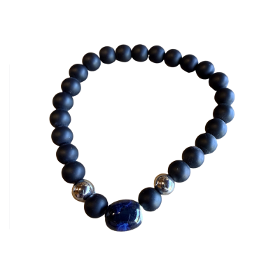 Ce bracelet en billes volcaniques et pierre bleue est bien plus qu’un simple accessoire.