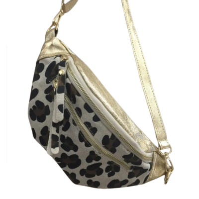 Ce sac banane tendance en cuir léopard et irisé clair est l’accessoire parfait pour un style moderne et chic.