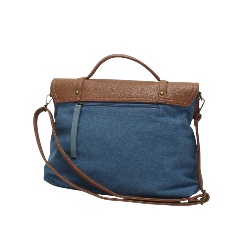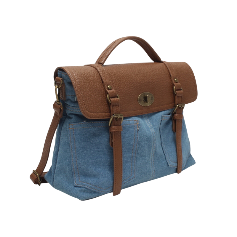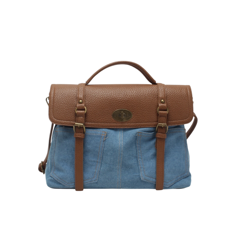 Ajoutez du caractère à votre tenue avec ce sac bandoulière bi-matière jean.