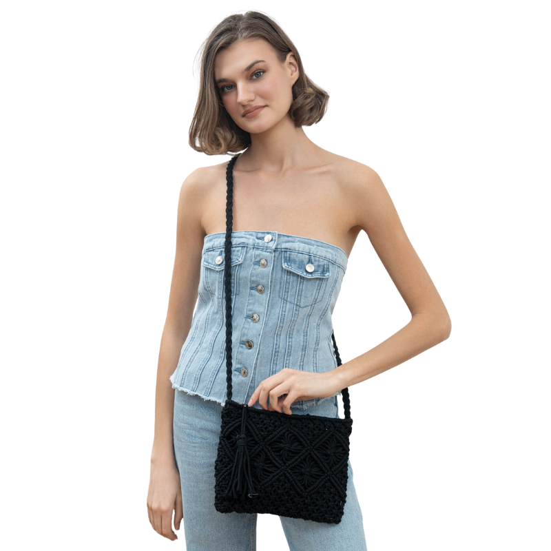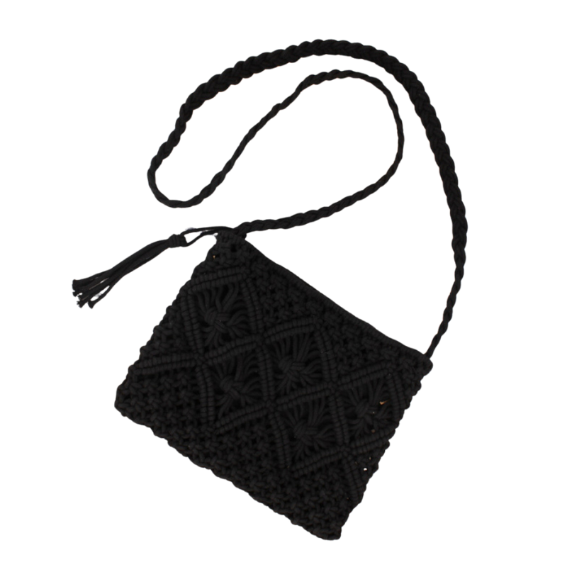Sac pochette crochet bohème-Noir