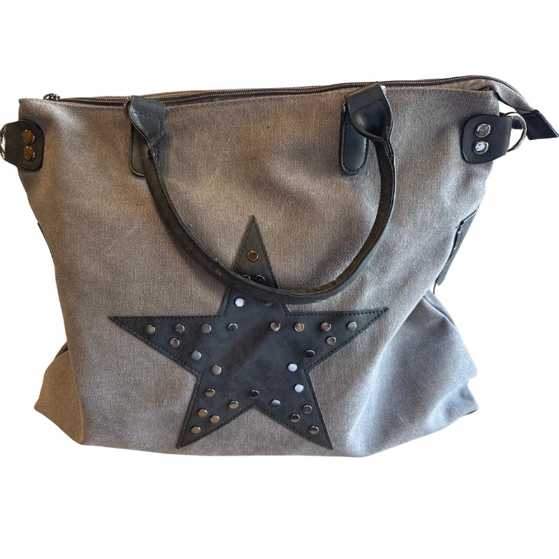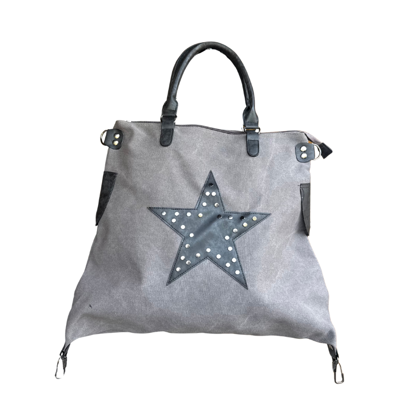 Ce sac toile bi-matière clous associe style, espace et robustesse.