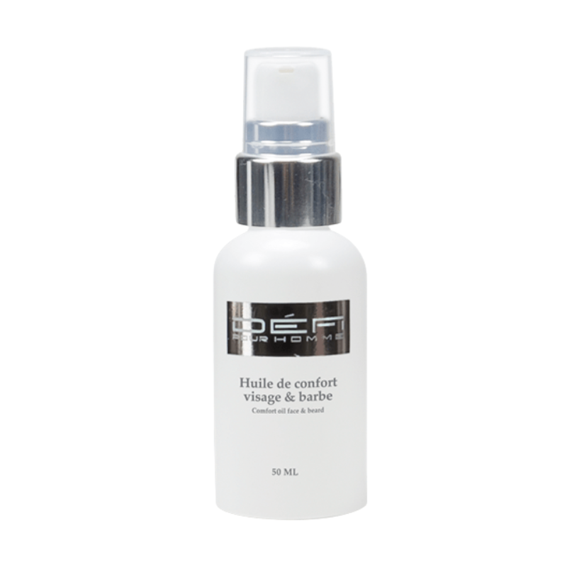 L’Huile de confort visage et barbe -Défi pour Homme -50 ml est le soin indispensable pour les hommes à la recherche de confort et de douceur au quotidien.