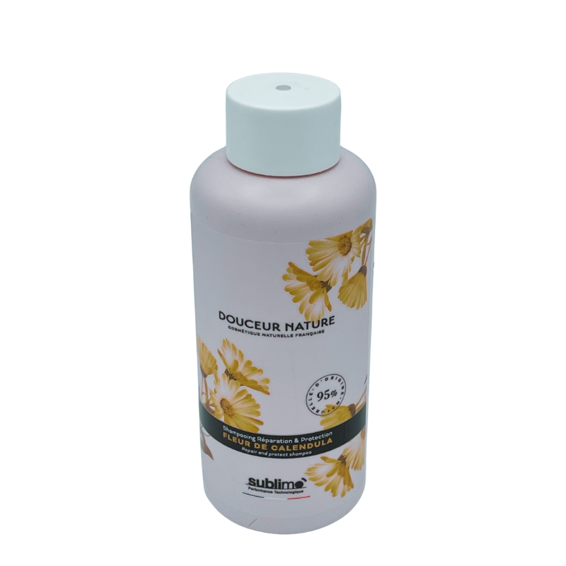 Le Shampooing Douceur Fleur de Calendula Sublimo – 250 ml nettoie vos cheveux en douceur tout en apaisant le cuir chevelu.